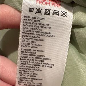 Material: Shell is 59% Nylon, 41% Polyester. Lining is 100% polyester. Padding is 100% Polyester.