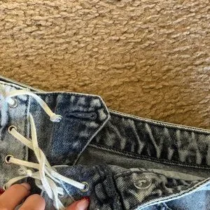 Cute high rise festival jeans that lace up in the front! There is also a button behind it featured in the third photo!