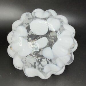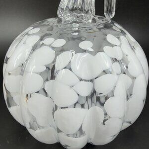 Vintage Art Glass Pumpkin Sculpture Figure Clear With Large White Spots Decor