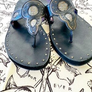Indigo by Clarks womens sz 8 black leather boho thong sandals