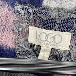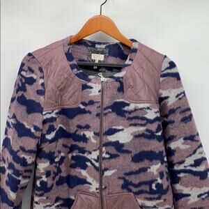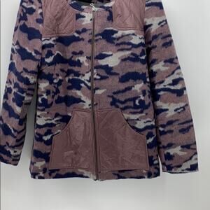 LOGO by Lori Goldstein Mauve Camo Quilted jacket fleece warm size 12 wool blend