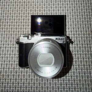The Nikon 1 J5 is a compact, retro-styled mirrorless camera from 2015, known for its speed, featuring a 20.8MP 1-inch sensor, fast hybrid autofocus, and high-speed burst shooting (up to 20fps with AF-C), plus 4K video (at 15fps) and a tilting selfie touchscreen, making it great for action and social sharing but with limitations in low light and some user interface quirks