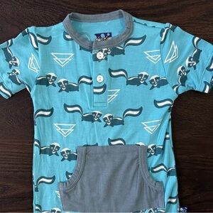 Kickee Pants Newborn Short Sleeve Henley Romper - Confetti Skunks