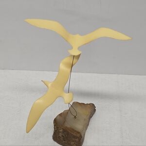 1974 Marvin Wernick Kenetic Seagull Sculpture Quartz Base with 2 birds on wire