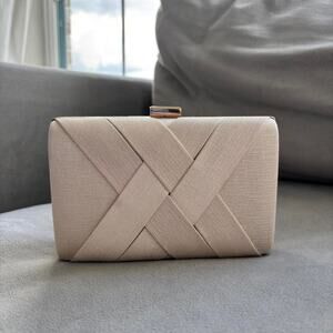 Cream and Gold Satin Clutch with Gold Chain Clasp Closure Evening Clutch