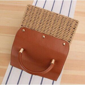 Woven Straw Beach Bag Summer Leather Flip Handbag Women's Casual Shoulder