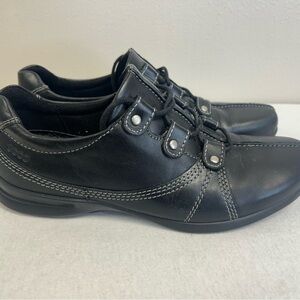 Ecco Womens 38 Black Leather Walking Shoes size 7/7.5 EUC Casual Sneakers