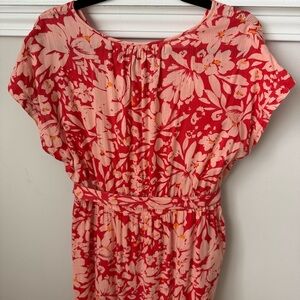 GAP Tiered V-Neck Floral Belted Dress Prairie Cottage Summer Orange Poppy Red M - in excellent used condition. When laid flat, dress measures approximately 19 inches from pit to pit and 39 inches long.