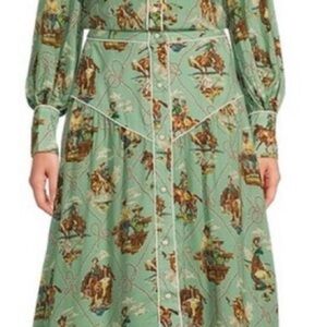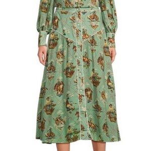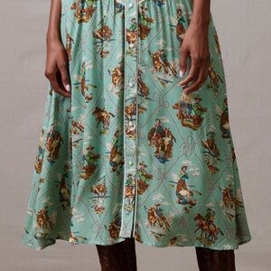 Double D Ranch Romance & Rustlers Western Printed Beaded Midi A-Line Skirt NWT