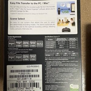 The Sony ICD-PX333 voice recorder is perfect for business, school, and personal use. With its 4GB of internal memory and microSD slot, you'll have ample recording time for classes, meetings, and ideas. Features like Voice-activated recording, Scene Select for optimized settings, and Intelligent Noise Cut ensure high-quality recordings. Ideal for anyone seeking an easy-to-use, reliable digital voice recorder!