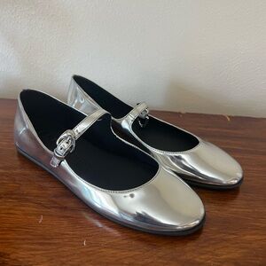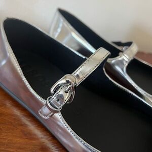 Mary Jane flats, metallic silver flats, ballet flats, buckle strap flats, comfort flats, dress flats, wedding flats, office shoes, balletcore, Y2K