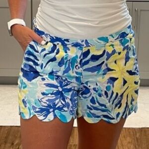 LILLY PULITZER Blue Boho Beachy Floral Scalloped Hem Shorts