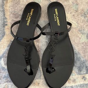 Currently $900+ online. 100% authentic! Step out in style with these elegant black sandals from Saint Laurent. Perfect for any occasion, these shoes offer both comfort and sophistication. No box never worn