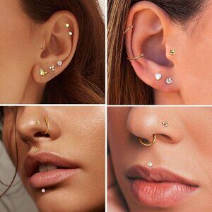 Features: This set includes 3 clicker hoop nose rings, 9 pairs of threadless flat back nose studs in various styles, and 3 different length nose ring posts plus a taper insertion pin. Made of hypoallergenic stainless steel with a shiny gold finish, these jewelry pieces are gentle on sensitive skin. The set offers versatile use – they work as nose studs, lip or septum rings, and even for the ears like cartilage, helix, or conch earrings. The push-in design makes for easy on/off, comfy wear, even during sleep or workouts. A great way to switch up your style effortlessly!