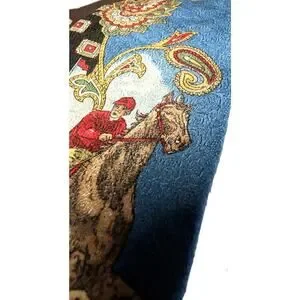 Please note: I almost thought it was stained on the blue part near the horse, but I put a magnifying glass to it and took pics as shown. It has a two tone and beautiful pattern on it so I don't think it is a stain. But sold as is. It would be worth dry cleaning if so.