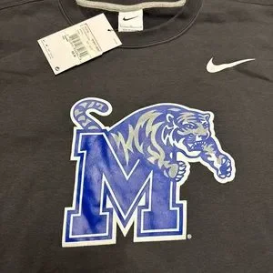 The Nike sweatshirt features the Memphis Tigers team name and logo prominently on the front, making it clear who you support. The shirt is made with high-quality materials and is sure to keep you warm and comfortable. Whether you're a fan of the team or just looking for a stylish and comfortable sweatshirt, this Nike offering is perfect for you.