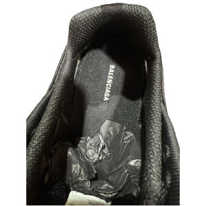 The product is a Balenciaga Drive Sneaker Triple Black in size 7, designed for women. This athletic shoe features a sleek black synthetic upper material with the signature Balenciaga Drive Sneaker model. Released in 2022, this stylish sneaker is perfect for driving performance and activities. With its high-quality craftsmanship and iconic design, this shoe is a fashionable and functional choice for women looking for a versatile sneaker option. NIB with Dust Bag