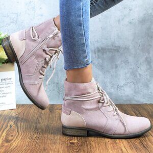 Women's Dusty Pink Genuine Leather Suede Ankle Lace Bootie with Side Zipper