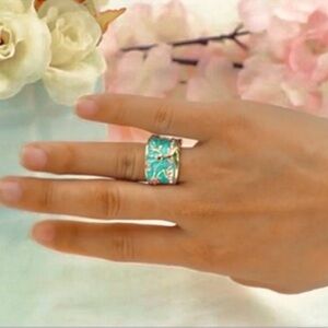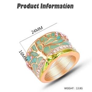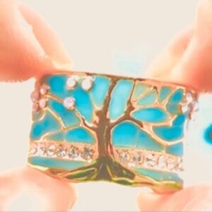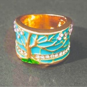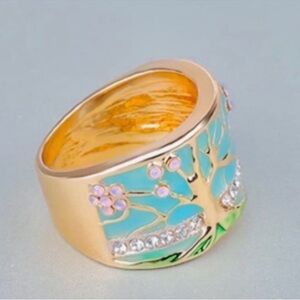 NIB 18k Gold Fire Opal and enamel tree of life Cherry blossom ring