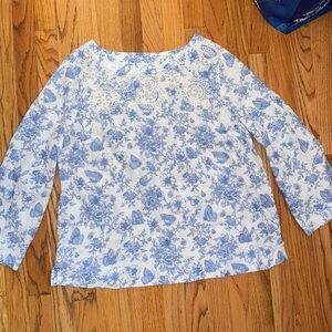 Charter club 100% linen floral embroidered women’s shirt sz Large white/blue