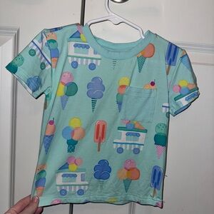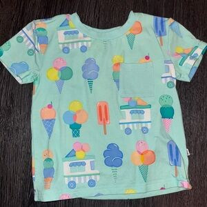 Delightful kids shirt featuring a playful ice cream print. Perfect for adding a pop of color to your child's wardrobe and super soft Little Sleepies famous bamboo. Features a playful chest pocket. Worn handful of times -washed with Dreft.