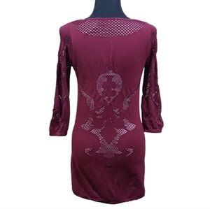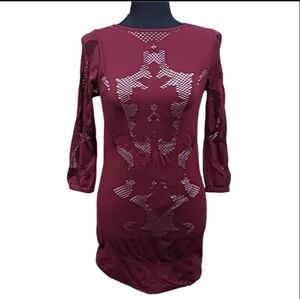 *NWT* Intimately Free People Placed Cutwork Bodycon Mini Dress, Size M/L. COLOR: Burgundy Combo. 92% nylon, 8% spandex. Machine washable.