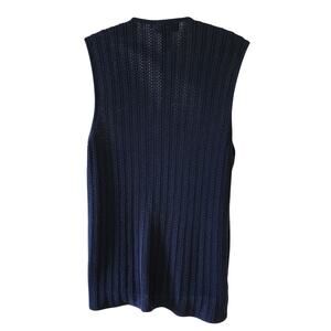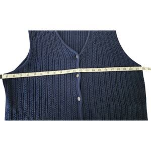 Lands End VTG 90's Navy Blue Abalone Button Down Sweater Vest Womens Size Medium