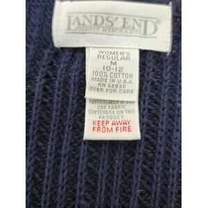 Step back in time with this stunning vintage 90s Lands' End sweater vest! The classic navy blue color complements the unique abalone button-down design, making it a standout piece for any wardrobe. This women's size medium vest is perfect for layering, adding a touch of retro charm to any outfit.
