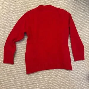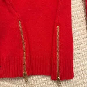 Stylish red crewneck sweater, zips on the side. Warm and perfect for layering.