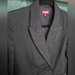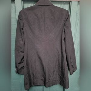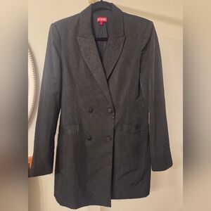 Elevate your style with this sleek black double-breasted blazer coat. Perfect for any occasion, it offers a sophisticated and timeless look.