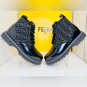 Fendi Force FF Biker Ancle Boots Calf and Goat Leather Size EU-10 New with Box!