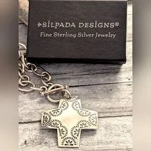 Vintage Retired Silpada Sterling "Virtuosity" Stamped Cross Necklace