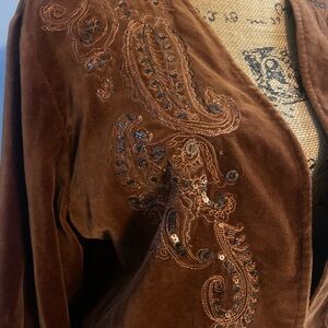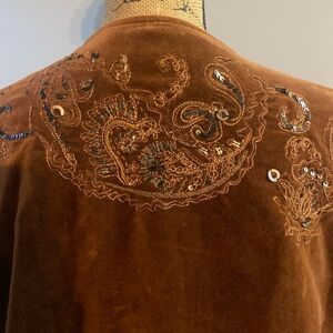 Chico's Sz 2 Rich Rust Velvet Sequined Embroidered Women’s Blazer