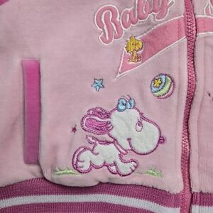 Vintage Baby Snoopy Pink Velour Zip Up Hoodie 6-9M Peanuts Y2K Retro
