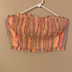 Pilcro long sleeve boyfriend striped shirt & smoked top set size medium & SP/MP EUC. Selling as a set. The smoked top has a loose thread as shown in the last photo.