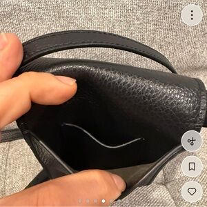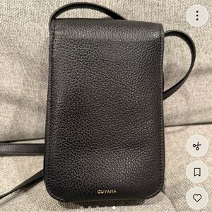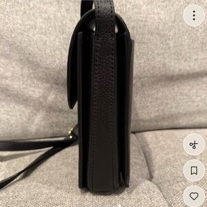 Elegant black leather crossbody bag. Sleek design with textured finish. Perfect for everyday use.
