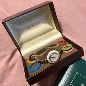 Stylish Gucci watch with multiple vibrant bands. Mix and match for any look.
