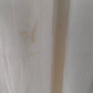 This very lightweight cotton nightgown is probably from the 1930s or 40s. It might even have belonged to my grandmother. Machine made, not handmade. There are two buttons in the front for closure. Lace aroundthe sleeves and neck. Note the nice embroidered details on the bodice. Note the extra triangular panel added to the skirt to give it a little flare. There's a slight stain in the front under the placket.