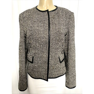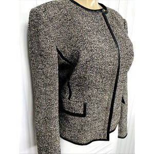 BOSS HUGO BOSS Jasila Jacket Blazer Tweed Zip Front Flap Pockets Lined Wool 12 L