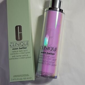 Achieve a flawless complexion with Clinique's Even Better Radical Dark Spot Corrector. This silver-toned skincare essential targets dark spots for a more even skin tone. Brand new in box! 100ml! $155 retail!