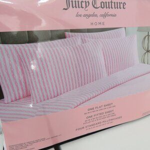 Juicy Couture JC Logo Pink & White Hearts Striped queen 6pc Sheet Set