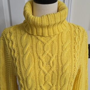 LAUREN RALPH LAUREN JEANS CO VIBRANT YELLOW CABLE KNIT COWL NECK SWEATER M
