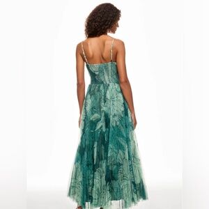 This Hutch dress features a flattering sweetheart neckline and a full, tulle-layered midi skirt with a botanical print that lends a romantic garden-party vibe. Pair it with strappy sandals and a simple clutch to let the dress's vibrant pattern stand out.