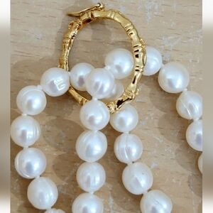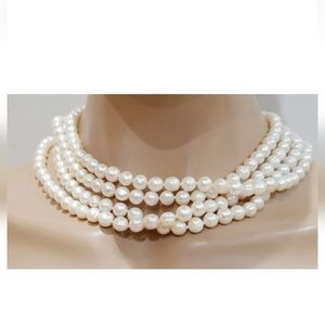 Yellow gold 4 strand freshwater pearl 20'' collar necklace. Used and in very good condition. Unknown brand. Please look at pictures for more details or contact me thank you.