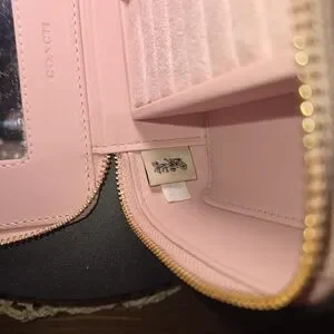 Charming and stylish, this Coach jewelry box features a delightful pink butterfly print. Perfect for adding a touch of elegance to your everyday essentials. Great for taking on a trip to carry your jewelry. 5 1/4" X 4 1/2" X 2"