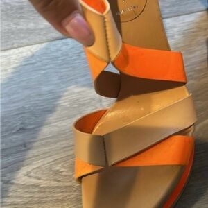 Step out in style with these chic platform sandals. Featuring a vibrant orange and tan design, these shoes are perfect for adding a pop of color to any outfit. Comfortable and trendy, they're a must-have for your wardrobe.