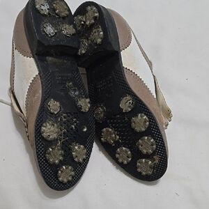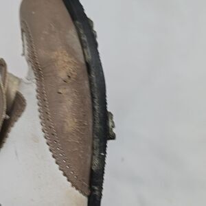 These stylish loafers by Walter Genuin feature a chic cream and tan color combination, highlighted by a playful fringe detail. The flat soles ensure comfort, making them perfect for everyday wear. Their unique design blends classic elegance with modern flair. good pre-owned condition
