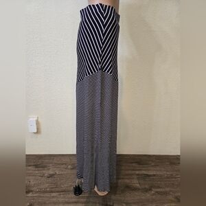 Coldwater Creek Sz Med Maxi Skirt stretch pullon Navy white stripe geometric