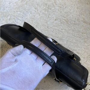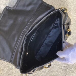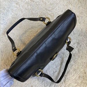 Sophisticated black leather satchel. Features gold hardware accents. Ideal for versatile styling.