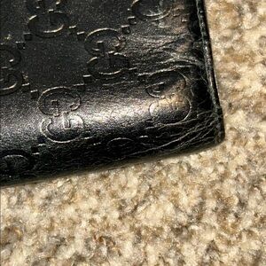Hi Iโm selling a very nice black Gucci wallet inside is in great condition. Outside is in good control does have some creasing as shown in the photos and some rubbing . ๐๐๐